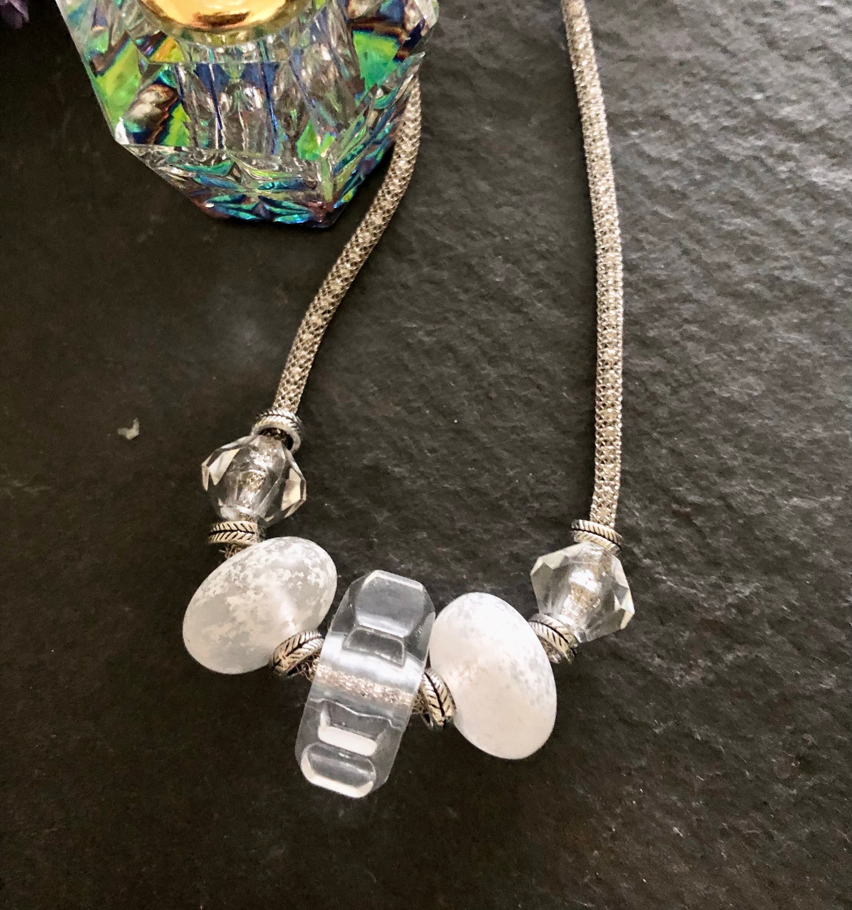 白と透明のヴィンテージビーズにメタルの